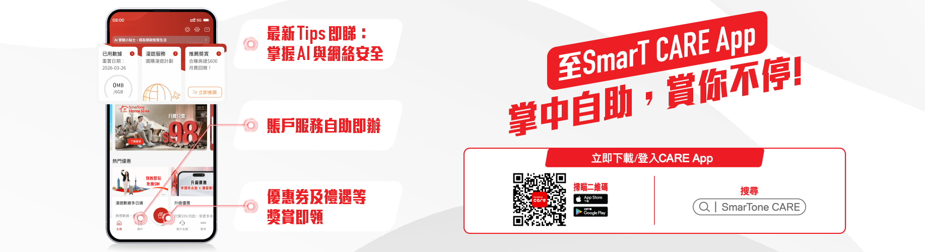 For account enquiry, please update SmarTone CARE to the latest version